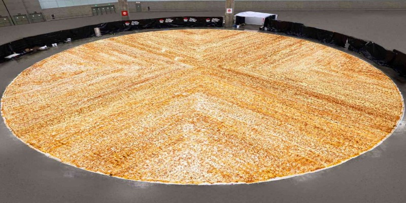 In 2012, the Wildwood Lodge in Pewaukee, Wisconsin, celebrated National Pizza Month by creating a giant pizza measuring 24.15 meters (79 feet) in diameter. This pizza required a team of chefs and volunteers to complete. It was shared among hotel guests and residents, making it a community event that celebrated the joy of pizza.